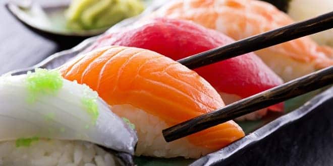 Sushi; haşlanmış ve soğutulmuş pirincin içersine çiğ balık dilimleri veya deniz mahsulleri eklendikten sonra Japonya’ya özgü, kurutulmuş yosun yaprağına sarılarak hazırlanan Japon yemeğidir.