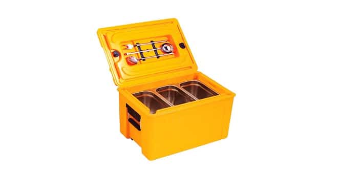 Thermobox yemeği saklamak veya taşımak için kullanılan kutulardır. Thermobox içinde taşıdığı yemeğin / gıdanın rengini, kokusunu, görünümünü ve özellikle sıcaklığını korumak için tasarlanmıştır. Thermoboxlar paslanmaz çelik veya plastikten üretilebilir. Thermobox seçiminde özen gösterilmesi gereken konu sizin işiniz için en uygun olanının belirlenmesidir. Örneğin bulaşık makinesinde yıkanıp yıkanaması, raf sayısı ve iç hacmi, yüklemenin yapıldığı yer ( üst, yan ), taşıma kapasitesi, taşıma kulplarının dayanımı, köşebent koruması, cidar sayısı, izolasyon özellikleri, üretildiği hammadde, insan sağlığına uygun olup olmaması, kilitlenme özelliği gibi birçok konu thermobox seçiminde önem göstermektedir.